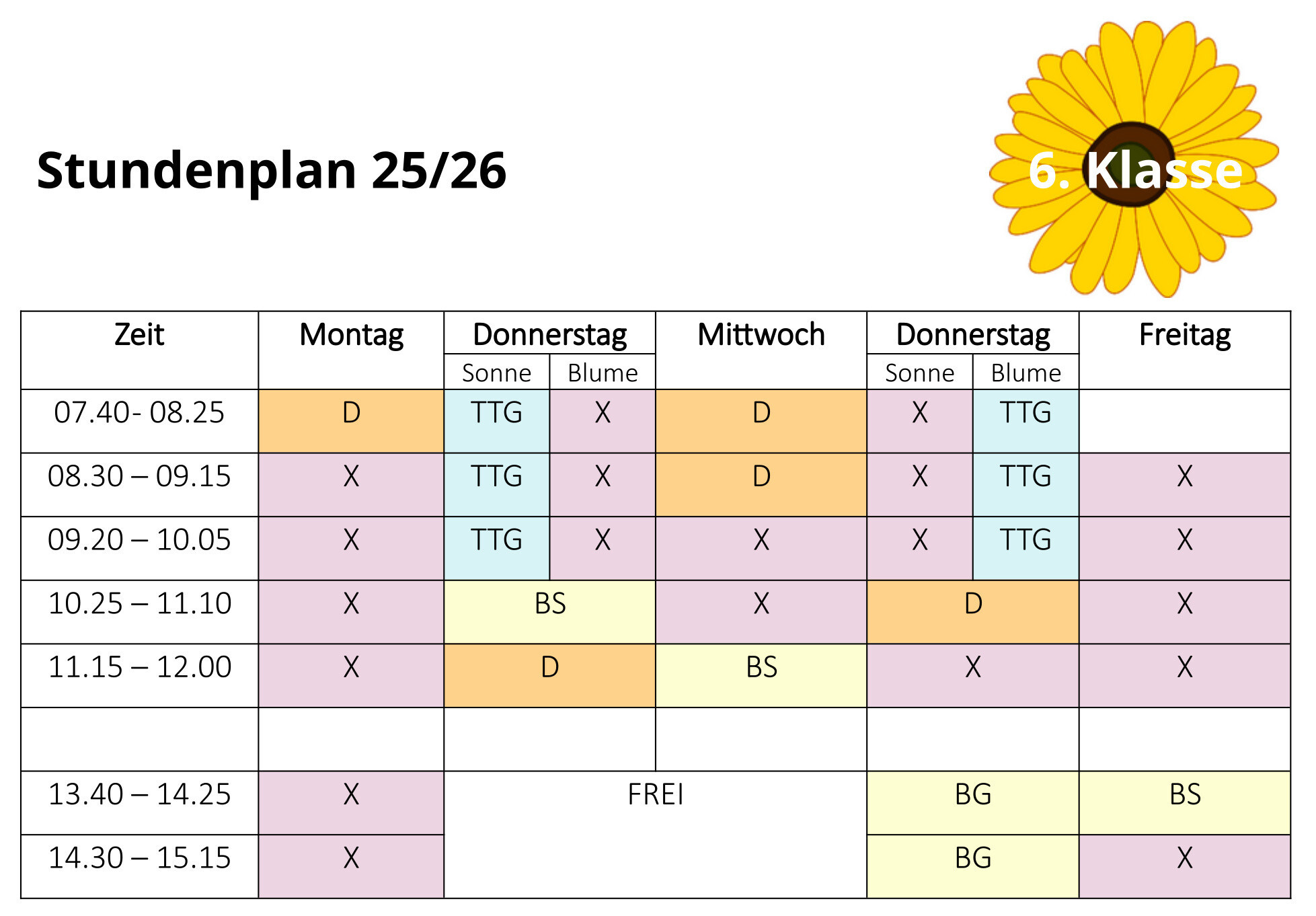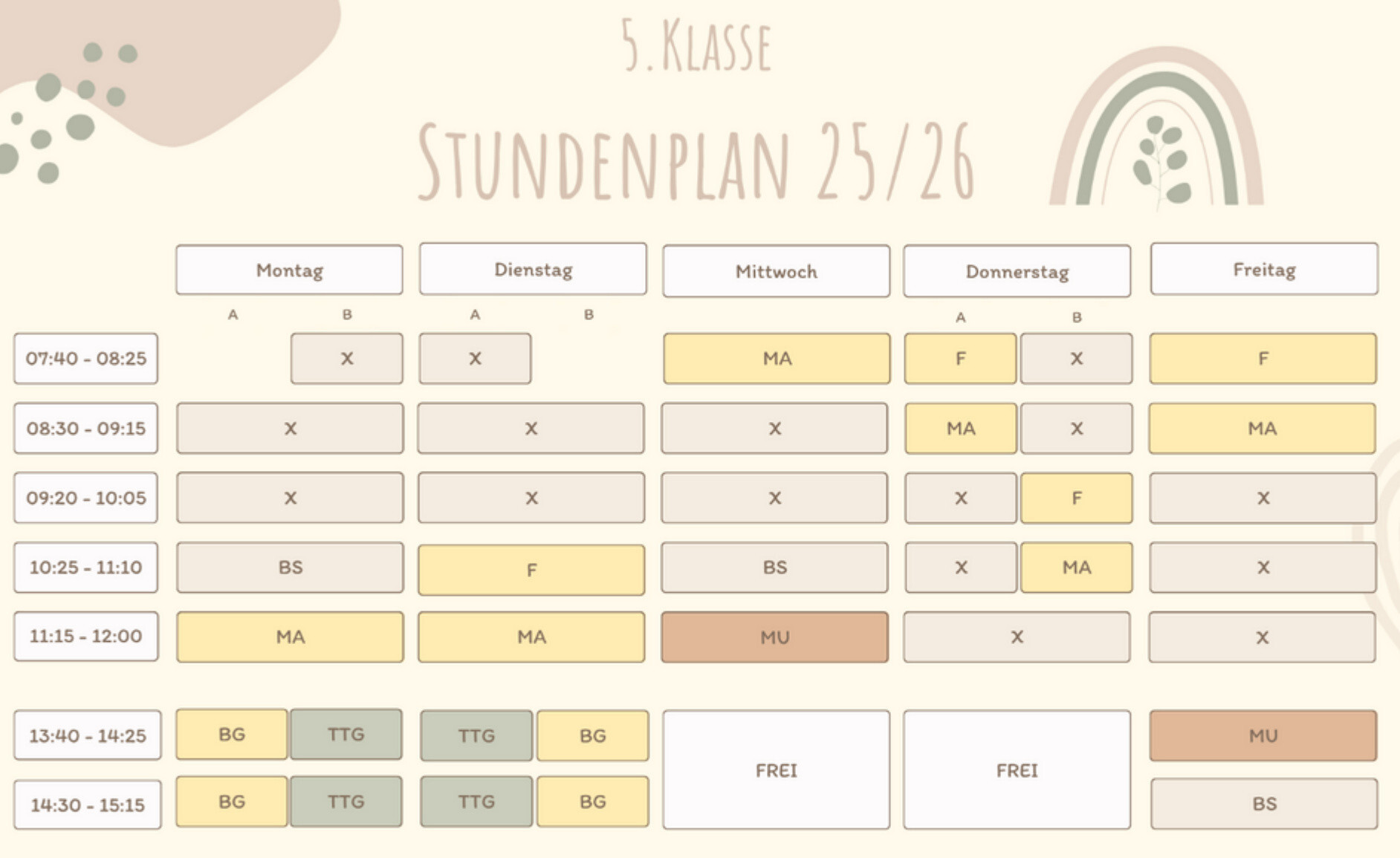 Stundenplan 5. Klasse